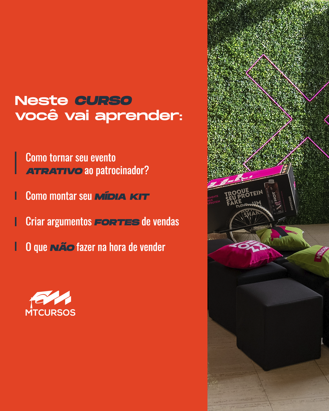 Com o Curso de Venda de Patrocínio, torne-se um especialista em vendas. Aprenda a abordar marcas, montar cotas e entregas e evitar erros comuns na hora de vender. Além disso, receba uma análise do seu mídia kit para traçar melhorias e se destacar no mercado.
